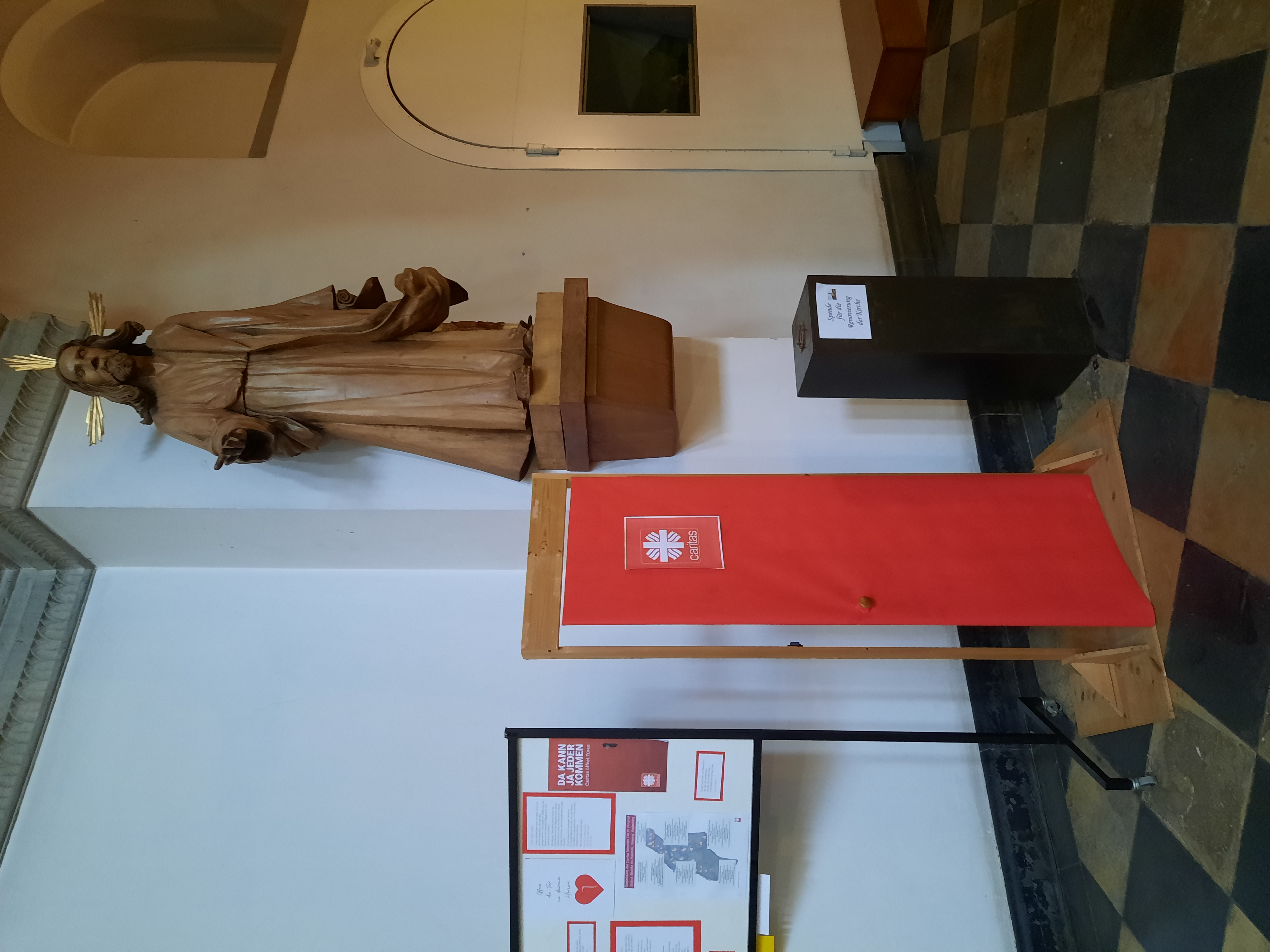 Am 27. September fand unser Caritas-Gottesdienst in Kooperation mit der Caritasstelle Balanstraße statt. Die Caritas-Kampagne steht heuer unter dem Motto "Da kann ja jeder kommen. Caritas öffnet Türen." Und bei uns gab es auch eine rote, geöffnete Caritas-Türe.